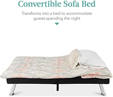 Best Choice Products Faux Leather Upholstered Modern Convertible Futon, Adjustable Folding Sofa Bed, Guest Bed w/Removable Armrests - Black
