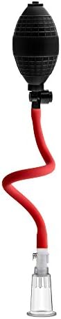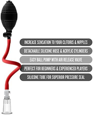 The Beginner System is used to increase sensation to the clitoris and nipples. Squeeze ball pump to create suction. Featuring detachable silicone hose acrylic cylinder and an air release valve for easy removal leaving the clitoris or nipple suctioned to the 3-in.-long cylinder. 0.6 inch internal diameter.