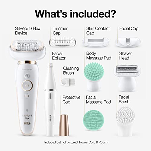 The Braun Silk-epil 9 flex 9-300 beauty set is the World's 1st epilator for Women with a fully flexible head, for effortless hair removal. Enjoy weeks of salon-smooth skin thanks to micro-grip technology and a 40% wider head that removes hairs as short as 0.5mm. The beauty set includes 4 additional attachments so you can shave, trim, massage and exfoliate, plus FaceSpa with a facial epilator, cleansing brush to break free from skin impurities and massage pad for skin vitality. Braun Epilators (SE5, SE7, SE9, SE9 Flex) are GreenCircle certified as a ‘sustainable solution with certified energy savings’. The other accessories and attachments in the box were not assessed by GreenCircle. Box includes: 1 x epilator 1 x shaver head 1 x trimmer head 1 x Braun FaceSpa 1 x FaceSpa epilator 1 x FaceSpa cleansing brush 1 x FaceSpa massage pad 1 x pouch 1 x body massage pad 1 x cleaning brush 1 x charger 1 x AA batteries.