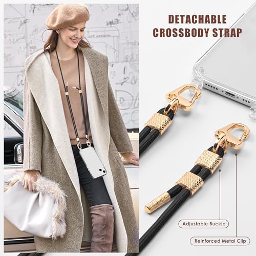 Wuwedo for iPhone 13 Pro Crystal Clear Case with Detachable Adjustable Crossbody Strap, Slim Fit Shockproof Protective Phone Case with Anti-Lost Shoulder Neck Lanyard for Girls and Womendummy