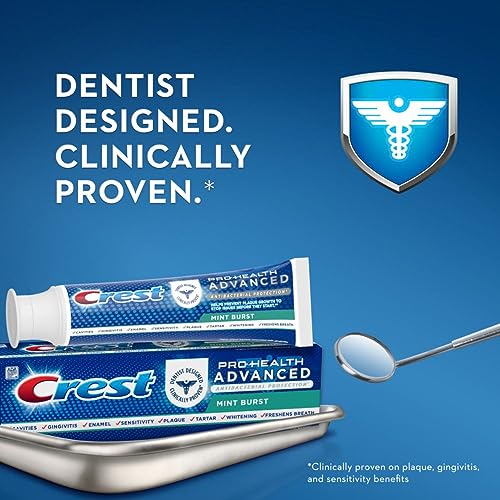 Advance to a Healthier Smile and Stronger Teeth with Crest Pro-Health Advanced Antibacterial Protection*. It provides protection against plaque bacteria to keep your mouth healthy and provide long lasting freshness. It is made with patented stannous fluoride and provides clinically proven protection. It provides 8 advanced benefits in 1, including: Fresh Breath, Whitening, Protection against Acid Erosion**, Sensitivity, Cavities, Gingivitis, Plaque, and Tartar. *fights plaque bacteria associated with gingivitis **Acid erosion effects: Acids in everyday foods can soften and thin enamel, leaving teeth less white, weaker, and sensitive.