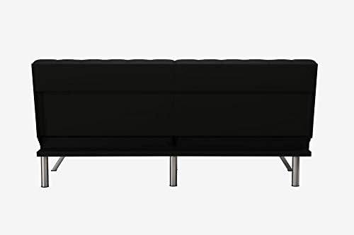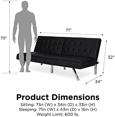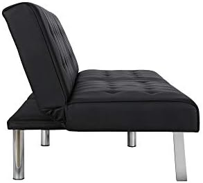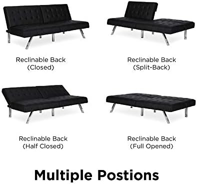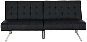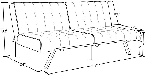 The Emily futon is a striking piece that blends a modern look with a low-profile style. The tufted upholstery adds a classic touch and is available in faux leather, linen and velvet in a variety of colors. The sleek slanted chrome legs add an exciting burst of shine that is perfect for any living space! Thanks to the Emily’s convenient split back, you and your guest can easily adjust the futon to your comfort level—whether that’s sitting up to chat or lounging back to watch a favorite movie. You can also lie both sides flat for a really comfortable sleeping spot for overnight guests. Its small profile means your futon can fit just about anywhere like your living room, home office and even guest room, while always making a big statement! For a truly impressive seating space and even more sleeping room, pair your futon with the Emily chair, chaise lounger and/or ottoman.