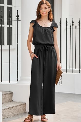 Dokotoo Jumpsuits for Women Summer Ruffle Sleeves Wide Leg Overalls