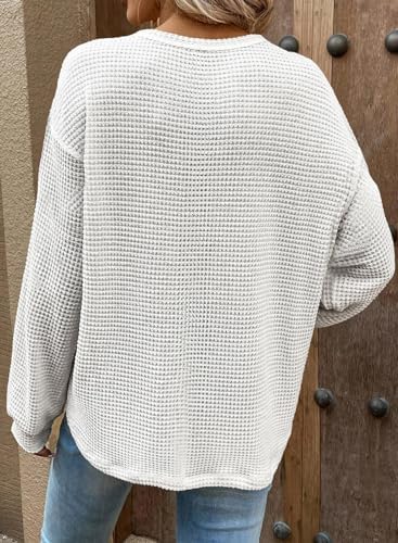 Dokotoo Womens Tops 2024 Oversized Long Sleeve Crewneck Waffle Knit Shirts Business Casual Blouses Basic Shirts