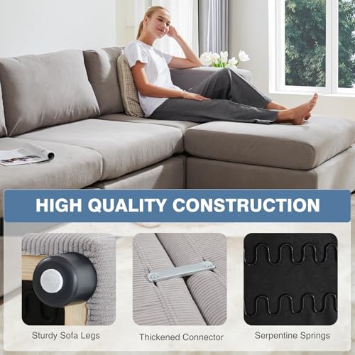 CHITA Oversized Modular Sectional Fabric Sofa Set, FSC Certified Extra Large L Shaped Couch Reversible Chaise Modular Sectional Couch, 112 inch Width,4 Seat Modular Sofa with Storage Ottoman, Linen
