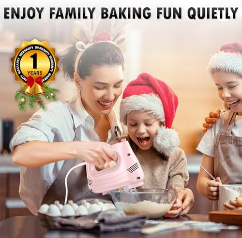 Electric Hand Mixer with Stainless Steel Whisk, Dough Hook Attachment and Storage Bag, Handheld Mixer for Baking Cakes, Eggs, Cream Food Mixers. Turbo Boost /5 Speed Kitchen Blender PINK