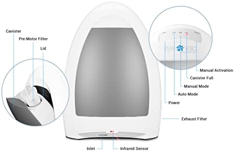 Easy to use control panel buttons and LED lights to indicate auto, manual, and canister full settings.