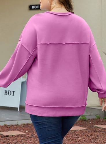Eytino Plus Size Oversized Sweatshirt for Women Button V Neck Fall Outfits