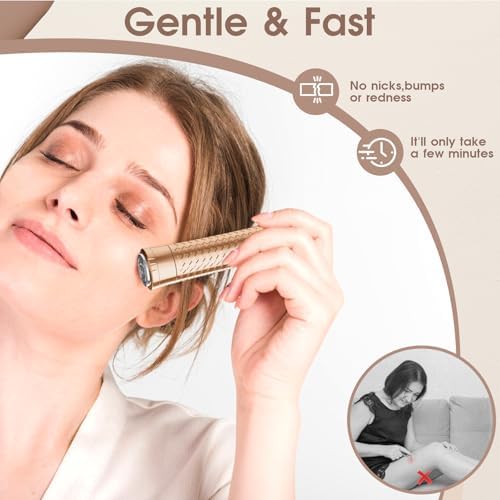 Facial Hair Removal for Women, Rechargeable Hair Removal Device, Painless Face Electric Razor/Shaver for Lip, Arms, Face, Peach Fuzz (Gold)