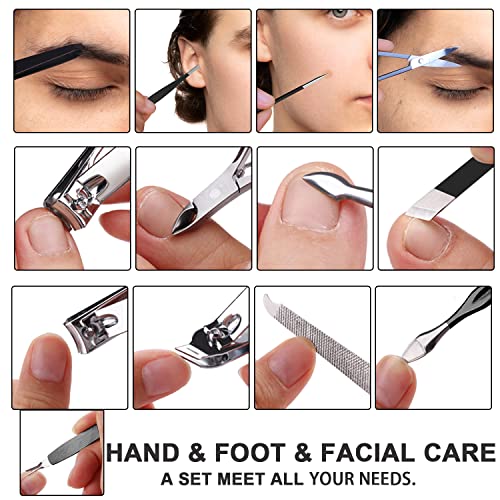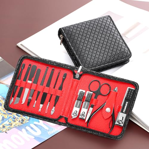 FAMILIFE Nail Kit, Professional Manicure Set Manicure Kit Nail Clipper Set, 13 in 1 Stainless Steel Pedicure Set Nail Clipper Kit, Men Grooming Kit with Portable Black Leather Travel Case for Him