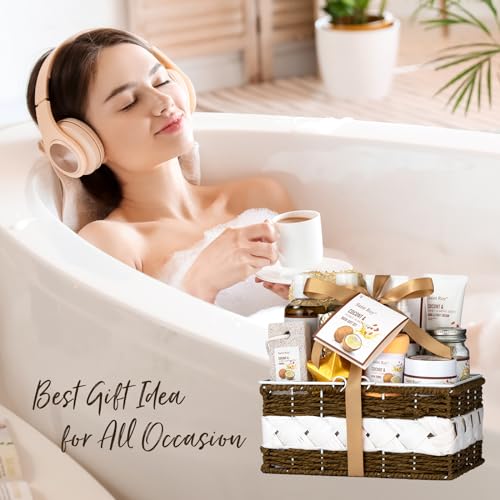 Fathers Day gift Basket for Women, Shower Bath Kit, Personal Care Gift Set, Coconut & Honey Almond Beauty, Home Bath Pampering Large Size Luxury Bath and Body Home Spa Kit, Mother's Day Gifts for Mom