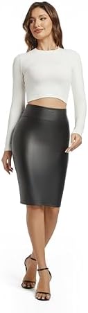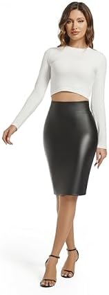 Exude a business savvy edge in this sophisticated office attire. Pair your leather pencil skirt with a sharp blouse and blazer for the ultimate in feminine work wear.