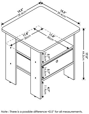 Create the prefect living room space with this FURINNO end table with bin. This end table will sit perfectly next to your chair or sofa and both beautiful and functional. Featuring one fabric drawer is perfect for keeping DVDs and remotes corralled, while an open shelf makes a marvelous spot to put a lush potted succulent on display. Rounded edge design prevents potential injuries. This storage end table is easy assembly with step by step instruction. Care instructions: wipe clean with clean damped cloth. Avoid using harsh chemicals. Pictures are for illustration purpose. All decor items are not included in this offer.