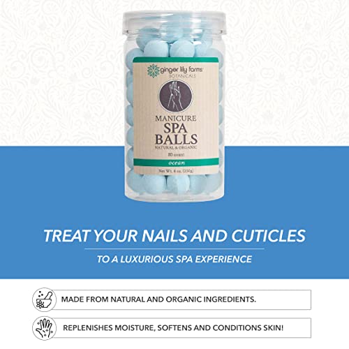 Ginger Lily Farms Botanicals Manicure Spa Balls have a super moisturizing and hydrating formula that helps prepare nails and cuticles for manicure services. These organic and natural spa balls replenish moisture, soften, and condition the skin, leaving it feeling soft and supple. With soothing properties and exquisite scents, our spa manicure balls effortlessly dissolve in water and help you relax.