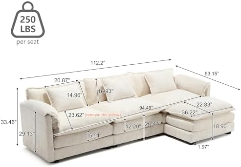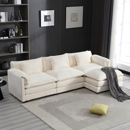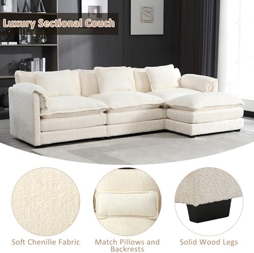 GNIXUU 112" Oversized Sectional Sofa Cloud Couch for Living Room, Modern Chenille L Shaped Couch, Comfy Boucle Modular Sofa Sleeper with Moveable Ottoman & Memory Foam(Beige)