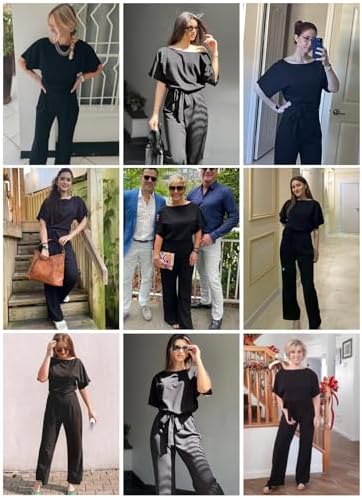 Happy Sailed Womens Loose Short Sleeve Belted Wide Leg Pant Romper Jumpsuit Business Casual One Piece Outfits