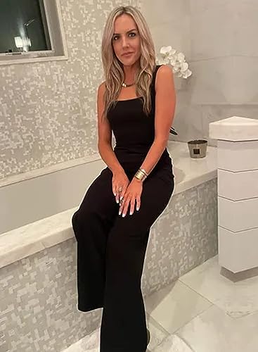 Happy Sailed Womens Square Neck Jumpsuit Summer Sleeveless Wide Leg Pants Rompers Dressy Jumpers Business Casual Outfits