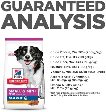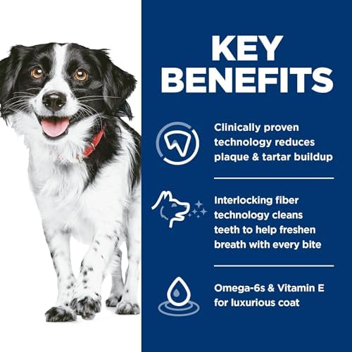 Dog dental health affects so much more than just the teeth. Help support overall health and vitality in your adult dog with Hill's Science Diet Oral Care Adult Small & Mini Dog Food. Designed with a unique, clinically proven interlocking fiber technology, this unique kibble works to clean dog teeth and freshen breath with every bite. Plus, this premium dog food made with natural ingredients is packed with Omega-6 fatty acids & Vitamin E to help your grown dog keep a healthy coat and skin each and every day. This recipe is formulated with decades of cutting-edge research to be a great-tasting dog food your adult dog can truly enjoy.