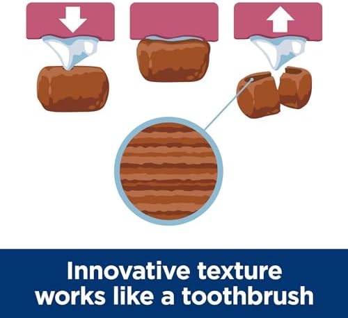 WOW!!! THIS WORKS FAST!!!I wish I had taken before and after photos!!! In less than ONE WEEK, my dog's yellow tartar and plaque coated teeth are white!!! I wouldn't believe this if I didn't see it with my own eyes!!! I didn't get this for free or any discount. I am not being compensated for this review!!!I contacted my vet and they gave me a list of approved products to help with oral care)Back to results...So, my young adult dog had come to us with advanced oral build up. No decay, just super yellow teeth with visible tartar and plaque. Her breath was rank! ICK!In less than one week, after adding this food to her current Hills food, it acted as super miracle scrubbers doing a wonderful job faster than I could have ever dreamed!!!This worked like those commercials that show dogs yellow icky teeth getting white with one swipe.I don't think this will help with decaying teeth... But for breath and tartar/plaque this is a WIN!I still see yellow at the gum line, but each time I look at her teeth the get whiter and whiter!NOW Breath...I literally would gag when her mouth would get close to my nose. I would have to wash my hand, arm or anywhere she licked me because her breath was so funky! I would not believe this if I didn't see it! Her breath is so neutral now all I smell is food. This makes me so happy because the teeth cleaning would have been dangerous for her to stay under for a longer period. Also, it costs so much more than this bag of dog food.We were going to have our baby's teeth cleaned while she is spayed, but now we won't have to pay for or keep her under anesthesia longer to get her dental care.***OLD REVIEW: (kept so you can see that my dogs did not choke or have issue with chewing them.)So, my YORKIES love this food, but for 4 pound dogs, these are WAAAAAY too big to give them whole. They will choke!These are about a half an inch wide and a half an inch long.Some are larger.I have to use a nutcracker to break them and give them to my babies.The package says SMALL AND MINI. I don't know what small and mini means to you, but I think 4 pound dogs are SMALL AND MINI and these are not!As for the teeth, and if this helps with their plaque or tartar, don't know yet.It will take me a week to crack all the pieces to serve to my babies!