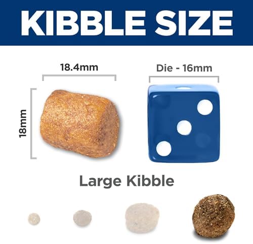 The kibble is huge, like 1/2 inch diameter.Not for smaller dogs as it is too difficult for them to bite. I am literally crushing each one with pliers let's make a manageable for my dog so I don't waste my money.