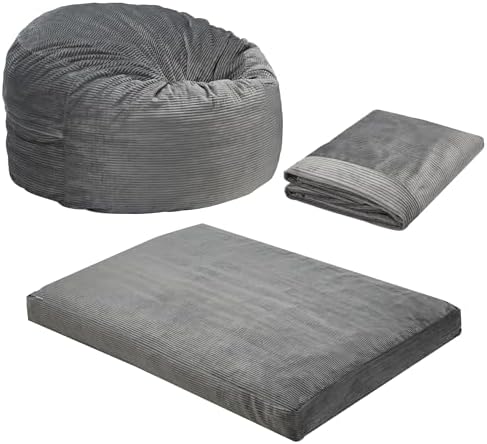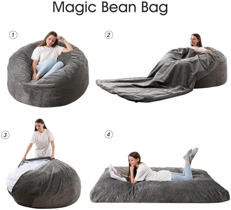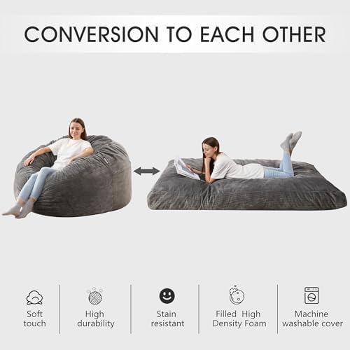 Homguava bean bag chair & bed cover is made of soft, thick and machine washable premium fabric, and the inner liner is filled with safe and healthy high-density foam. It is a fun conversion chair that converts from a soft and comfortable bean bag to a Large size bed mattress.