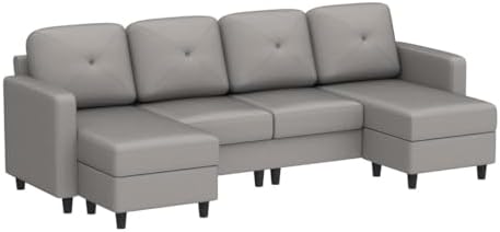 HONBAY U Shaped Sectional Couch Convertible Sectional Couch with Double Chaise 4 Seat Sectional Sofa for Living Room, Light Grey