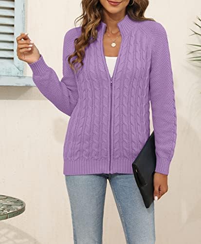 Hongqizo Women's Zipper Cable Knit Sweater Cardigan Long Sleeve Open Front Warm Knit Cardigan Casual Cardigan Knitwear