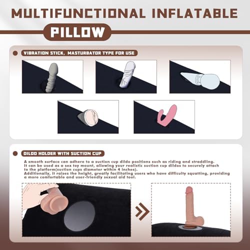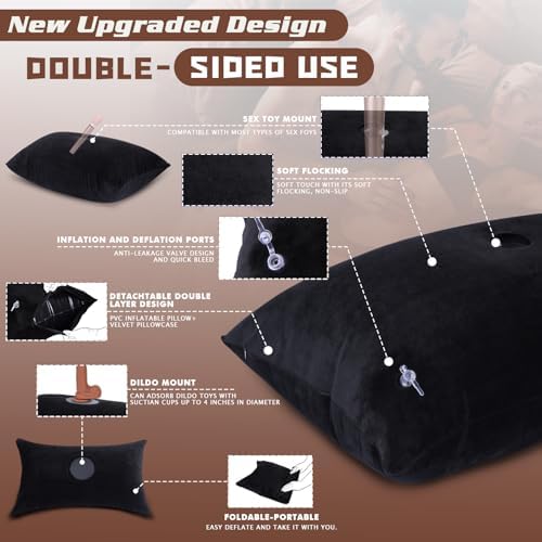 This pillow is both soft and sturdy without sacrificing too much on either front. It can hold up to weight plenty fine without worrying about any air escaping. The velvet material on the outside is machine washable which is a huge plus! We have used this both as a solo pillow and for both of us and it works great! The suction cup base is only going to be as good as the suction cup on the toy, so you should know what you are in for. The other side with the "pocket" is great for holding toys but you are only going to be able to use battery powered ones. The major flaw for me in this pillow is the deflation. If you don't get the inflation amount exactly right it is difficult to deflate during any sort of activity. Even during cleanup deflating the pillow is very tedious and takes a couple of minutes of constantly working at it to deflate. My other inflatable pillow is much easier to inflate and deflate but otherwise I like this one better!