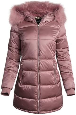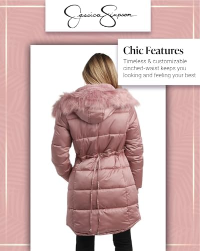 Jessica Simpson Women's Long Puffer Jacket - Quilted Winter Coat with Faux Fur Trim Hood - Insulated Coat for Women (S-XL)