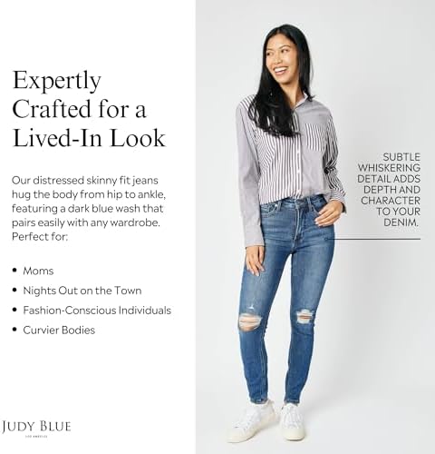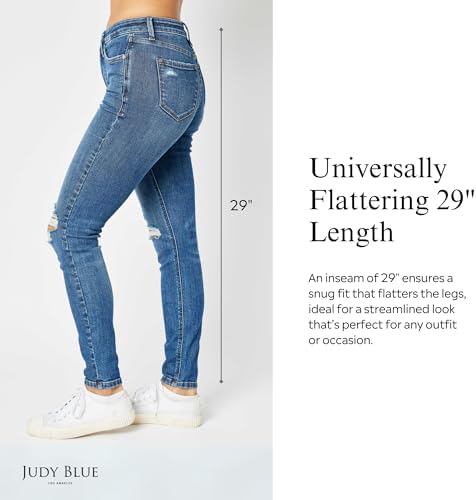 Judy Blue Women's Mid Rise Tummy Control Destroy Skinny Denim Jeans, 88798