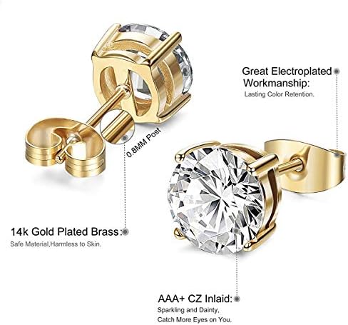 Kainier Women's 14K Gold Plated CZ Stud Earrings Simulated Diamond Round Cubic Zirconia Ear Stud Set(5 Pairs)…