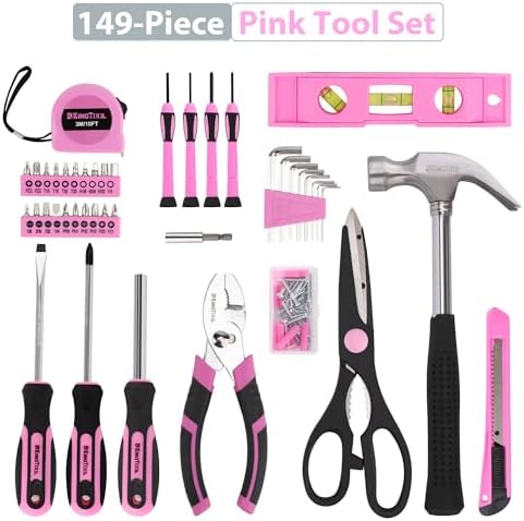 KingTool 149-Piece Pink Tool Kit - Basic Home Repair Tool Set, Small Tool Kit with Plastic Toolbox, Perfect for Women, Office & College Repairs