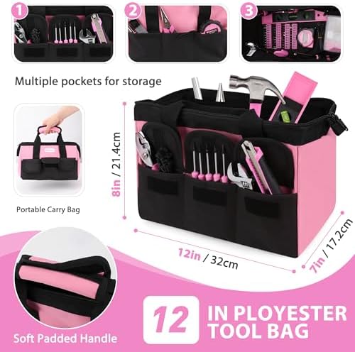 275-piece pink tool set: wrench, Allen key, claw hammer, level, screwdriver, screwdriver bit, tape measure, utility knife, pliers, scissors Batteries Included?