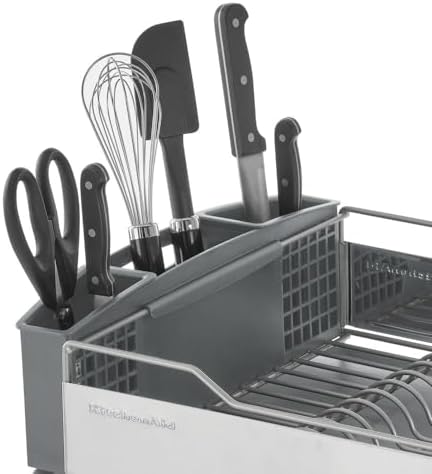 KitchenAid Large Capacity,Full Size, Rust Resistan Dish Rack Angled Drain Board and Removable Flatware Caddy, Light Grey