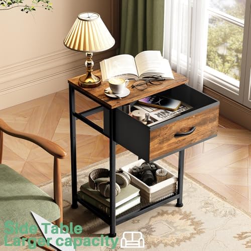 Designed in a rustic style, end tables with drawers complements any room and works perfectly as a side table set of 2 in the living room, providing convenient access to everything