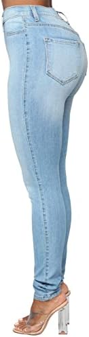 Women's High Waist Skinny Stretch Jeans feature a unique blend of cotton, polyester and spandex that will slim your midriff, lift your hips, lengthen your legs and hug you in just the right spot.