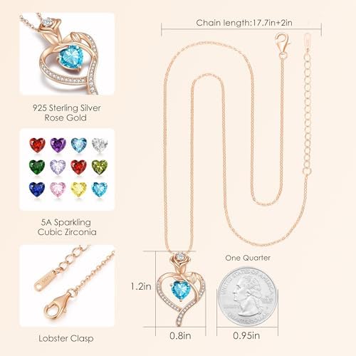 LOUISA SECRET Rose Flower Heart Birthstone Necklaces for Women, 925 Sterling Silver Fine Jewelry, Pendant Heart Necklaces Birthday Anniversary Christmas Gift for Women Wife Mom Girlfriend Lady