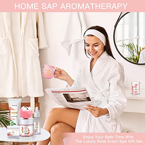 LUCOTIYA Birthday Gifts for Women Best Spa Gifts Baskets Box for Her Wife Mom Best Friend Mother Grandma Bday Bath and Body Kit Sets Self Care Present Beauty Products Package Rose Scent