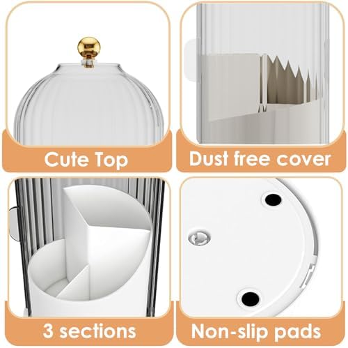 Makeup Brush Holder Organizer with Lid,360 Rotating Clear Dustproof Makeup Brushes Organizer for Vanity Desktop Bathroom Countertop (Transparent)