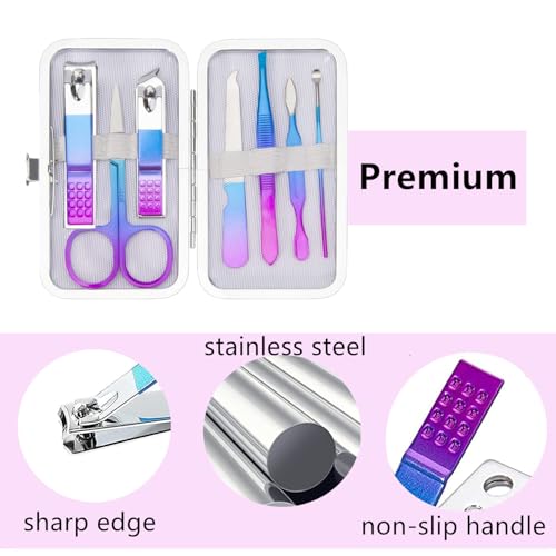 Multi-functions include facial care, hand care, and foot care. Beautiful and practical rainbow nail clipper set for manicure, pedicure, eyebrow trimming, etc.