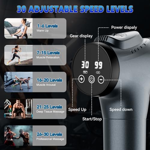 Massage Gun, Muscle Massage Gun for Athletes Handheld Electric Deep Tissue Back Massager, Percussion Massage Device for Pain Relief with 30 Speed Levels 9 Heads