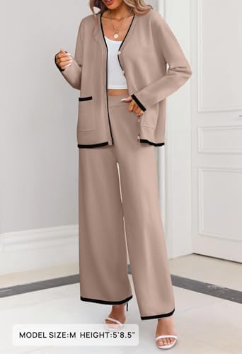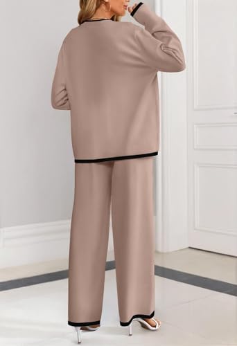 Featuring a chic V-neck design, long sleeves, and two front pockets, the sweater sets exude elegance and sophistication. The button-up closure adds a touch of class, while the contrast color edge detail creates a unique and eye-catching look that is suitable for any occasion.