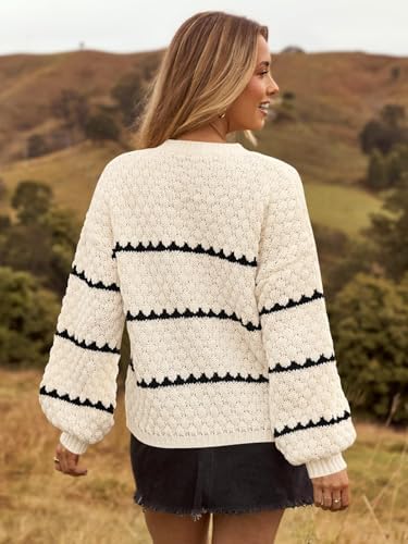 As the temperatures start to drop, cozy up in style with the MEROKEETY Women's Striped Long Sleeve Pullover Sweater. Made from breathable fabric, this oversized sweater provides a comfortable fit that feels great against your skin during the fall and winter seasons. Featuring long lantern sleeves and a classic crew neck, this sweater is designed for both comfort and fashion. The chunky knit texture gives it a warm and inviting look, while the striped color block design adds a trendy and playful element to your outfit. The unique diamond texture design further enhances the sweater's elegance and charm. Whether you're heading to the office, a party, a casual outing, or a date, this sweater is a versatile piece that can be dressed up or down to suit your needs. Pair it with jeans and boots for a laid-back look, or dress it up with a skirt and heels for a more sophisticated ensemble. Stay cozy and chic this fall and winter with this oversized sweater. Its baggy and loose fit offers a relaxed and stylish vibe that is suitable for any setting. Whether you're running errands, meeting friends, or just lounging at home, this sweater is a versatile and fashionable choice for your wardrobe. Upgrade your winter wardrobe with this classic and timeless piece. With its cozy and warm feel, trendy design, and versatile styling options, this sweater is suitable for the upcoming seasons. Choose from a range of colors and sizes to find the suitable fit for your style and personality. Stay on-trend and comfortable with this chic and stylish pullover sweater.