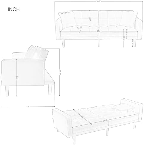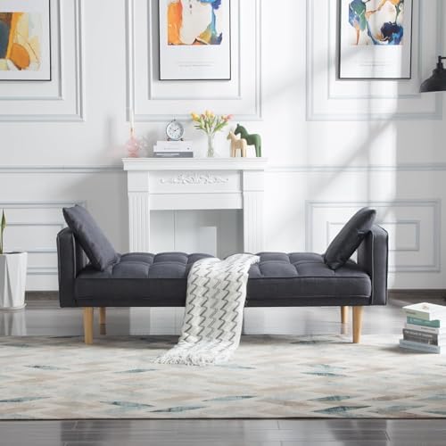 Modern Folding Sofa Bed 70.9" Futon Couch Convertible Tufted Loveseat with Adjustable Backrest for Living Room Lounge,2-Seats Sturdy Wood Legs Fabric Home Recliner Sofa,Dark Grey