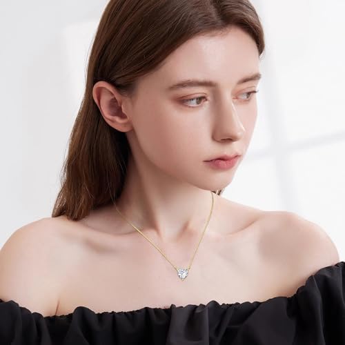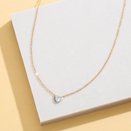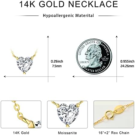 Moissanite Necklace for Women 1CT VVSI D Lab Created Diamond Pendant 14K Gold Necklace Heart Moissanite Pendant Diamond Solitaire Necklace Gift for Mother