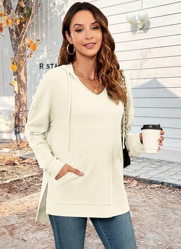 MOLERANI Womens Hoodie Casual Oversized Fall Waffle Knit Side SplitSweatshirts