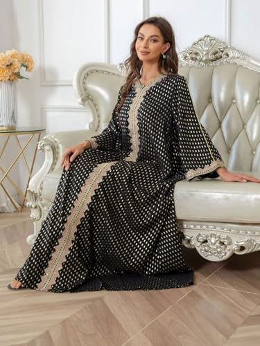 Muslim Abaya Dresses for Women V Neck Kaftan Islamic Prayer Robe Embroidered Bronzing Dress Holiday Evening Dress