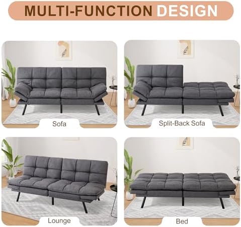MUUEGM Modern Convertible Memory Foam Futon Sofa Bed, Creating a Boutique Experience for The Better Life!