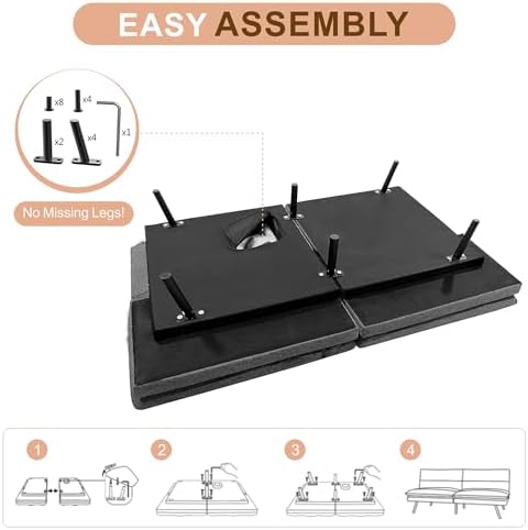 2. Take out the legs and hardware in the fabric zipper pocket on the underside of the sofa bed