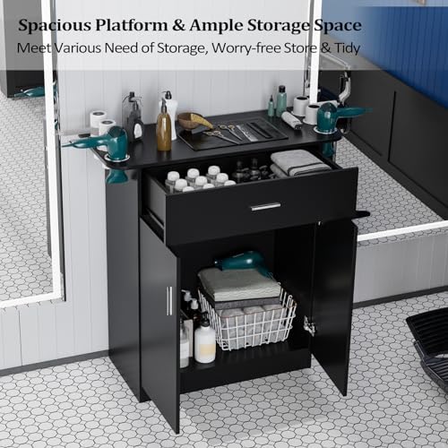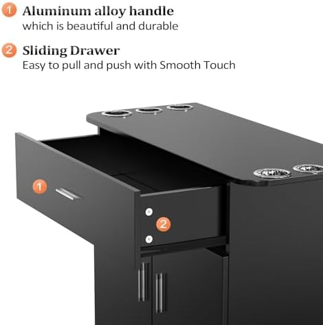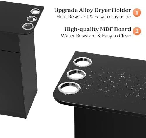 The salon styling station comes with a large storage Cabinet & 1 big drawer and 6 hair dryer holders, provides you with a more storage space.